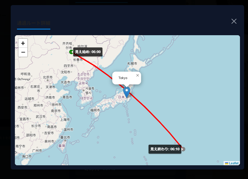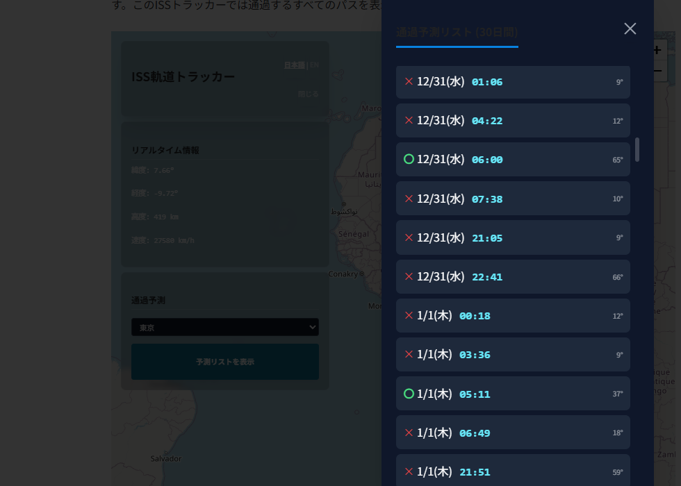 これにより、初心者の方でも「次に自分の街の上空をいつ通るのか」を簡単に判別できます。
