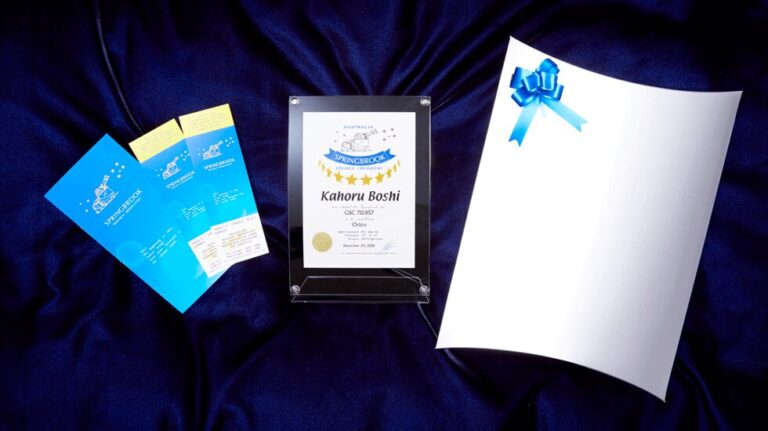 近くオーストラリアに行く予定がある方がスプリングブルック天文台を立ち寄り、星を眺めたいとか、いつかオーストラリアに行った際にこの天文台の記録を特別な人と確認したいなど、やはりスプリングブルック天文台に行くという体験を絡めてこそ、この証明書の価値が最も高まります。